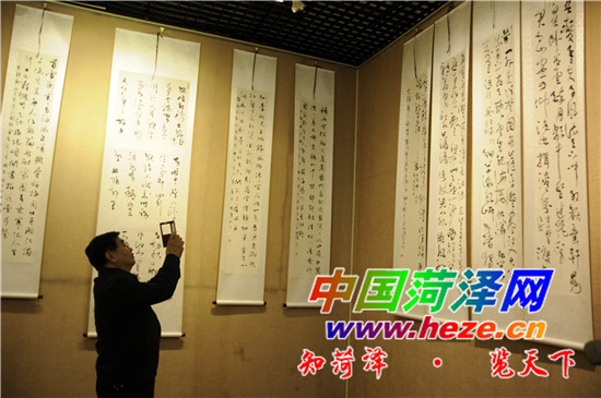 中国菏泽网消息 4月10日上午,“水浒墨韵”郓城十二人书画展在曹州书画院开展。此次展览由于法杰、孙建东、李明晋等12名郓城籍书画家联合举办,展出时间为三天。市政协主席刘勇为开幕式讲话并观看了书画展。