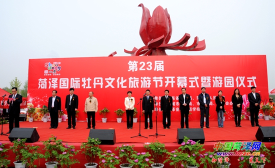 中国菏泽网消息 (记者 陈常召) 今天上午(4月16日),第23届菏泽国际牡丹文化旅游节开幕式在曹州牡丹园国花魂广场举行。山东省旅游局副局长周晓明、中共菏泽市委常委、副市长张毓华以及主协办单位相关领导出席仪式。
