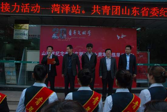 在活动仪式上,市邮政公司总经理王昆介绍了邮政系统基本情况及创建青年文明号相关工作,青年文明号号长接过省活动组负责人传递的团旗,并带领全体成员重温青年文明号精神内涵与信用公约;青年文明号集体成员在条幅上签字承诺。活动仪式结束后,省活动组、团市委等集体参观了中华路邮政支局、国网菏泽中华路服务大厅、东明县黄河大桥管理处、郓城县国税局服务大厅等4家国家级、省级青年文明号。这次纪念青年文明号二十周年“团旗接力”活动的开展,将助推我市青年文明号创建工作深化发展,进一步弘扬“敬业、协作、创优、奉献”的职业精神,激励更多的职业青年岗位成才、岗位建功。