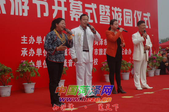 简短的开幕式结束后,菏泽本土文艺界人士奉献了一场具有浓郁地方特色的公益演出,演出没有一名明星大腕。本报菏泽义工团成员“农民歌手”贾崇珍、“地摊姐”黄丽娟、“山东来哥”张瑞来、“玉米姐”潘海霞组成义工爱心组合,共同演唱了《牡丹之歌》;菏泽乡土文艺人才康广为和三名弟子共同表演了音乐快板《花城喜事》;菏泽老年大学的学员们表演了舞蹈《梦舞飞天》。地地道道的菏泽人,实实在在的菏泽情,让来自五湖四海的游客拍手叫好。