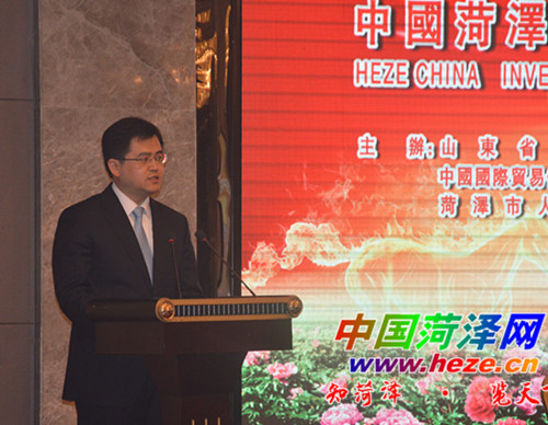 孙爱军市长介绍菏泽投资环境。记者 范卉蕾 摄
