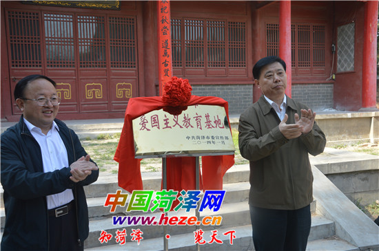 中国菏泽网消息 (记者 羊莹春)5月5日下午,凝香园爱国主义教育基地揭牌仪式举行。市委常委、宣传部长王永江和市政府党组成员、菏泽开发区党工委书记曹升灵共同为凝香园爱国主义教育基地揭牌。