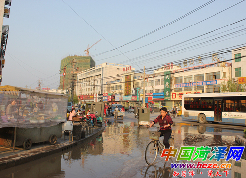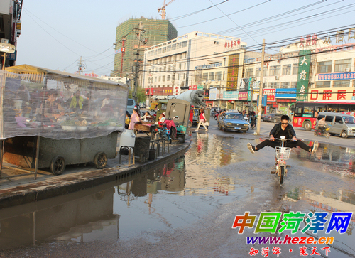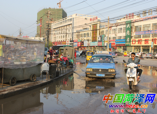中国菏泽网消息 (记者 建国 见习记者 敏静)5月10日,菏泽市区下了一场大雨。5月11日下午,市民冯先生致电牡丹晚报反映,市区杨庄路口(太原路与双河路交叉口)东北角的路面又出现了大量积水,影响市民正常通行,希望相关部门予以关注,根除该路段逢雨积水的问题。