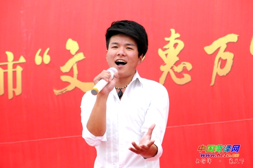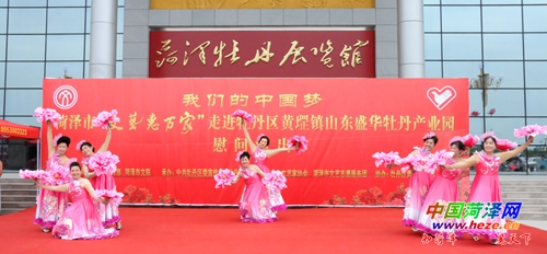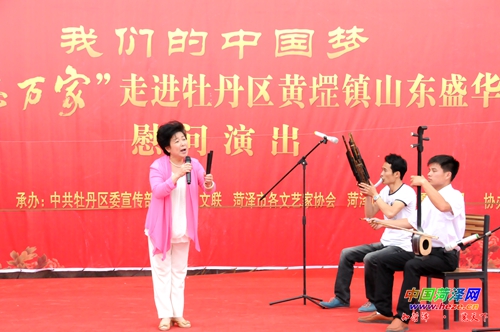 中国菏泽网消息 5月23日下午,由菏泽市委宣传部、市文联主办的菏泽市“文艺惠万家”走进牡丹区黄堽镇山东盛华牡丹产业园。来自菏泽市舞蹈家协会、音乐家协会等多个组织的文艺志愿者,给现场观众们带来了歌曲、豫剧、坠子等形式多样且高水平的文艺表演,吸引众多观众驻足观看,不时拍手叫好。