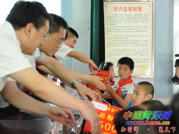 为了让生活在同一片蓝天下的孩子们都能分享爱的阳光,菏泽市体育彩票管理中心联合菏泽日报社、牡丹晚报、牡丹区委组织部、牡丹区教育局等单位发起了"手拉手心连心 菏泽市体彩中心资助李村镇贫困学生活动",在李村镇选出了30名家庭情况特别贫困的小学生,为他们每人送去了500元的爱心助学捐款。