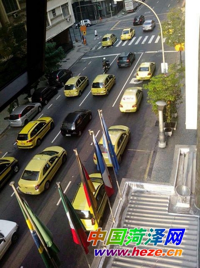 大街上的车辆,一如巴西队的队服,也是黄色的多
