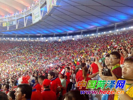 马拉卡纳,今天74000余人观看了西班牙对智利。去之前,我们大都把注压在了西班牙身上。还没进赛场,就发现我们陷入了红色的海洋。国人审时度势的能力我们还是发挥的淋漓尽致,我们很快打入了智利阵营。天时地利人和,满场表扬着一个声音:chi-li-chi-li,we are chile!当然,我们这种东方面孔的适时倒戈给了智利人民莫大鼓舞,居然大胜西班牙。看球的时候,才发现当伪球迷是件很有风险的事情:满场身着红色球衣的球迷让我误认为赛场上着红色球服的是智利队,开场五分钟后发现自己跟红色潮流兴奋点不一样[惊恐][惊恐][惊恐],有哥们善意提醒了一句:哥们,穿白色的是智利队[傲慢]KAO,好险!