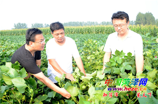 日前,菏泽日报社选派牡丹区李村镇后张行政村“第一书记”管卫东请来了市农业局专家为该村棉花种植户提供生产技术指导。据了解,农业技术专家来到田间地头一方面查看棉花长势情况,一方面为种植户讲授管理方面的技术,现场解答他们在生产中遇到的难题。通过现场讲授及农户与专家面对面的交流活动,丰富了广大农民群众的棉花种植专业技术知识,受到了广大的农民群众的一致好评。 记者 时苏建 摄