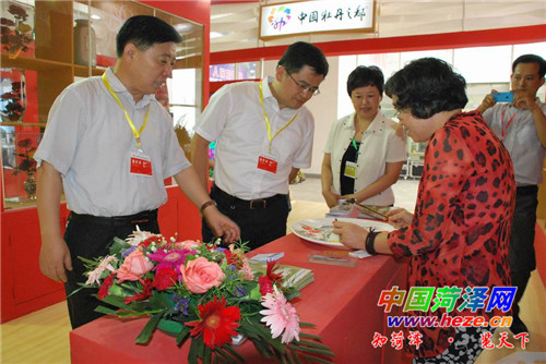 8月28日上午,市委副书记、市长孙爱军,市委常委、宣传部长王永江参观了菏泽展区,并对菏泽展区给予了充分肯定。据悉,本届文博会菏泽展区面积为189平方米,开幕当天,有1万余人次到菏泽展区参观或洽谈业务。 记者 姜培军 摄