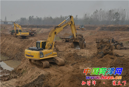 11月5日,洙赵新河单县段十几台大型机械正在紧张施工,目前洙赵新河治理工程已全线开工。洙赵新河起源于东明县宋寨村,向东流经菏泽市东明、牡丹区、郓城、巨野、济宁市嘉祥、任城区6个县(区),于刘官屯村东入南阳湖,横跨菏济两市,全长145.05公里,流域面积4206平方公里,其中菏泽段长106.53公里,治理工程年11月1日开工,计划12月31日完工。 治理工程竣工后,将保证洪水安全下泄,保护流域内人民生命财产安全,维护流域社会安定和工农业的正常生产,促进流域经济社会更快更好的发展。 记者 李若生 摄