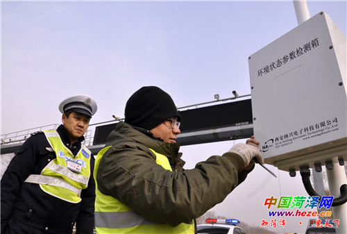 12月16日上午11时许,日东高速公路郓城唐庙段,技术人员对安装完毕的“环境状态参数检测箱”进行调试。检测箱上方,还装有遥感路面状况检测仪等设备。当日,记者从菏泽高速交警部门获悉,我市境内高速公路正安装一种“环境自适应交通管理参数自动修改系统”,该系统成为预防恶劣天气下高速公路交通事故的又一高科技利器,是全国高速公路中首个该系统的试点。据悉,该系统将于本月20日开始试运行。该系统包括信号连接的信息采集装置、处理器和信息显示装置,公路信息采集装置包括能见度测试仪、路面状况遥测测试仪和照度测试仪。能够实现根据环境状况,实时测量环境能见度值和路面积水、积冰、积雪等状况,实时同步自动修改限速标志指示牌、限速值和超速抓拍参数。 记者 张 啸 摄