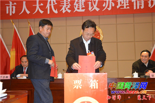 中国菏泽网消息 (记者 刘 洋) 2月5日晚,部分人大代表对代表建议办理情况进行票决。市领导段伯汉、赵传山、丁志刚出席会议。
