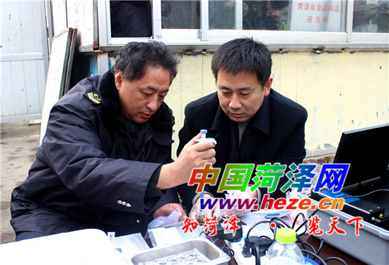 日前,市食品药品监督管理局工作人员在丹阳农贸市场对抽取的鲜肉样本进行快速检测。据介绍,为建立健全食品快检机制,防范不合格食品流入市场,保障市民春节期间食品安全,市食品药品监督管理局最近一段时间将对市区各大超市、菜市场进行突击抽检,突击抽检项目包括生鲜肉、熟肉制品、淡水鱼、馒头、蔬菜五大种类。 记者 胡德光 摄