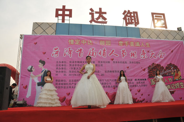 中国菏泽网消息 (记者 李保珠 李鲲)2月14日,由市精神文明办、市妇联、市民政局、菏泽日报社共同主办,《华夏关注》编辑部承办的“情定中达御园”菏泽首届情人节相亲大会隆重举行。上千名单身男女齐聚中达御园售楼处广场,上演全城热恋。