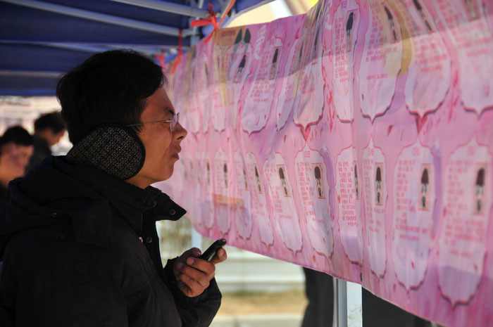 上千名市民一边浏览单身男女的相亲交友资料,一边欣赏精美的演出。大会工作人员为每一位单身男女精心制作了个人展示卡,每一个展示卡下面都留有空白,让倾心于你的那个他(她)留下信息。