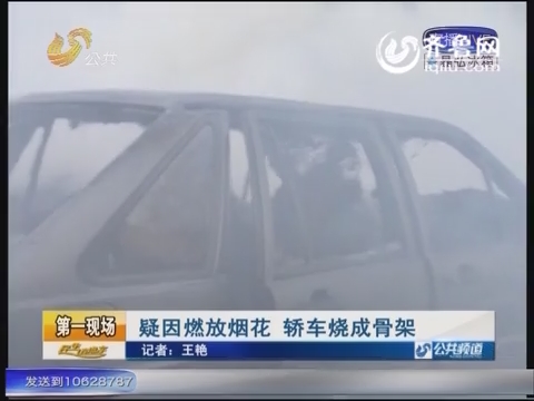 疑因燃放烟花 轿车烧成骨架(视频截图)