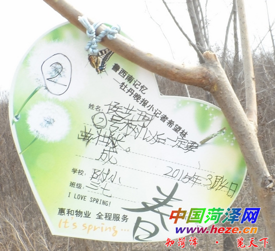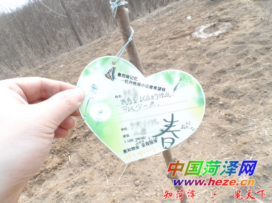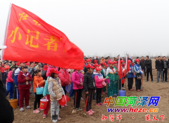 中国菏泽网消息 (记 者 李靖)3月14日上午,牡丹晚报小记者团的200多名小记者们来到菏泽市定陶县仿山镇鲁西南记忆景区,共植希望林。经过一上午热火朝天的辛勤劳动,小记者们栽下了近千棵小树苗,用自己的双手给美丽家乡送上一份绿色的祝福。