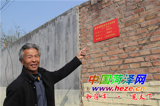 4月6日,郓城县程屯乡黄垓村老党员杨传文在指认自己的环境卫生负责牌。今年以来,郓城县积极引导基层党组织组建党员义务清洁队,充分发挥广大农村党员先锋模范作用,认真当好清洁乡村“宣传员”、环境整治“清洁员”、乡风文明“引领员”、清洁卫生“监督员”,助力“美丽郓城·清洁乡村”城乡换位一体化活动,得到了群众的广泛欢迎。 通讯员 魏忠友 李英 摄