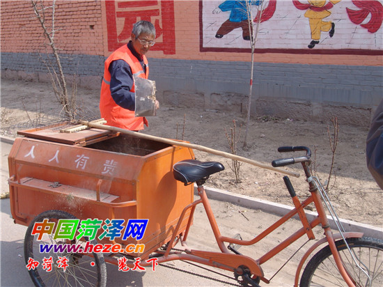 近日,记者来到鄄城县董口镇吕胡同村采访,站在街心的十字路口放眼望去,柏油街道上没有杂物,两旁的女真、月季等花木花繁叶茂,十分规整,墙面粉刷干净。一位身穿黄马甲、手推环卫车的老人正在打扫卫生,他是村里的保洁员吕绍俊,也是村“卫生委员”。