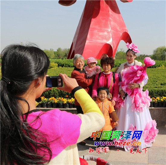 中国菏泽网消息 (记者 孙安琪)4月16日,第24届菏泽国际牡丹文化旅游节开幕。在曹州牡丹园花魁广场,记者看到身着艳丽的“牡丹仙子”成为了众人拍照合影的对象。“没想到会这么多人要求和我合影,很意外也很开心”,“牡丹仙子”王琪说。
