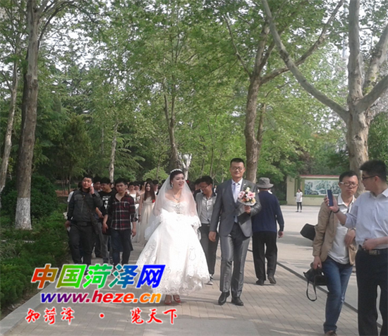 中国菏泽网消息 (记者 李靖)4月26日,菏泽第十二届国花婚礼大典在天香公园举行。来自全国各地的50对新人,身着盛装、手捧鲜花,在亲朋好友和众多市民的祝福声中喜结良缘。市政协副主席孙凤云出席国花婚礼大典,并祝福新人们永结同心。
