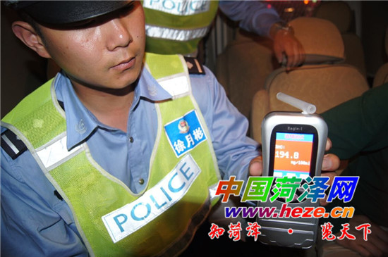 交警用酒精测试仪对驾车司机进行体内酒精含量检测