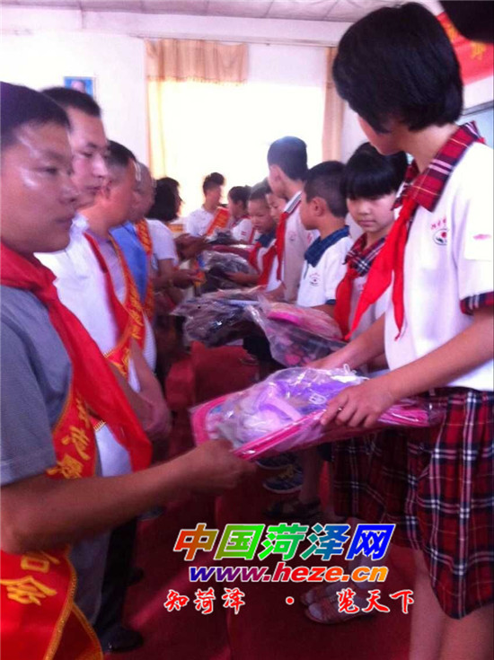 活动现场,菏泽市学雷锋联合会爱心人士与姜玉坤眼镜店工作人员将书包、笔记本、凉鞋、眼睛等共计价值3000元的物品赠送给10名贫困学生代表,以表达爱心人士对贫困学生的关心和厚爱。为感谢菏泽市学雷锋志愿者,何楼二中小学的同学们为志愿者表演了自编自排的文艺节目,志愿者与同学们进行了精彩互动。