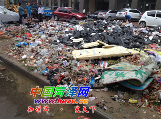近日,不少市民向本网记者反映,中央公馆小区北前空地变成了垃圾场,严重影响了附近居民的正常生活。6月30日上午,记者来到中央公馆北门,看到门口空地堆满了垃圾,还散发着恶臭。随后,记者来到了菏泽开发区环卫处和中央公馆物业管理办公室,据工作人员介绍,这里原本堆放了一些建筑垃圾,是中央公馆施工时产生的,而且会定时清理,“这些散发臭味的都是生活垃圾,是门口摆地摊倒在这里的。我们也跟摊主们沟通过,让他们不能往这里倒垃圾,但是效果并不明显。”