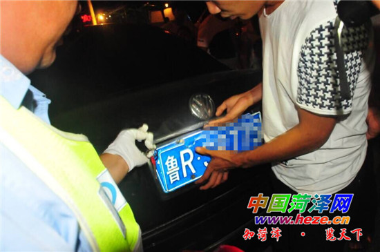 2日晚9时许,一辆黑色大众轿车沿曹州路与牡丹路交叉路口自东向西行驶,途经交警检查点。执勤人员核实该司机行驶证后,绕至车辆后方发现了端倪,前后车牌不一致!经检查,该车前面车牌属于正常,后面车牌不但遮挡了真实号牌,还套用其它车辆号牌。市区大队机动队队长黄健说:“这样的情况真的很少见,当了这么多年交警,还真是第一次遇见。”黄健介绍,该车不但遮挡号牌,还套用其他车辆号牌,应进行合并处罚,车辆驾驶员将受到扣除24分和2200元的罚款。