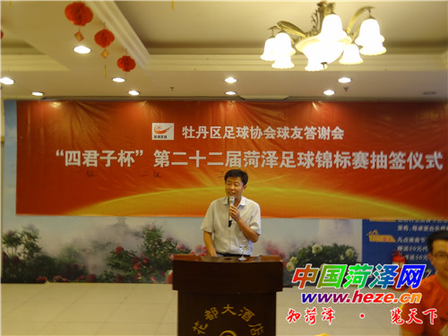 中国菏泽网消息(记者 张卫东)7月26日,"四君子"杯第22届菏泽足球锦标赛新闻发布会暨抽签仪式在菏泽花都大酒店举行。 本届锦标赛由牡丹区足球协会主办,山东四君子集团协办,共有来自全市各先县区的9支球队参赛。本次赛事的最大特点,不仅有代表各县区的球队,还有一支代表乡镇的球队参赛。在当日举行的抽签仪式中,郓城华鑫物业、菏泽SKY、单县四君子被分在A组;定陶、菏泽山鲁建工、菏泽高新技区吕陵被分在B组;鄄城、菏泽城建集团、菏泽FOREVER被分在C组。比赛日期为8月8日-12日。