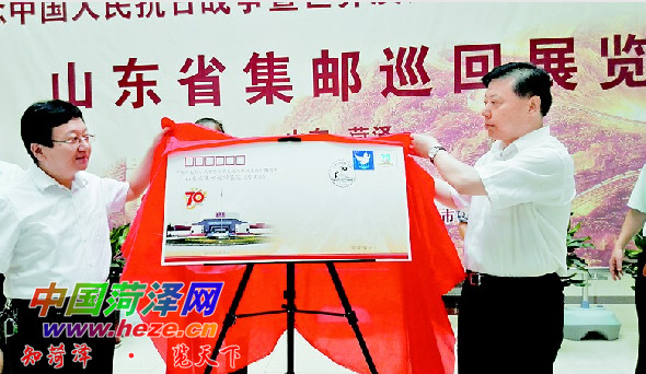 8月7日上午,由市委宣传部主办、中国邮政集团公司菏泽市分公司承办的“纪念中国人民抗日战争暨世界反法西斯战争胜利70周年山东省集邮巡回展览”(菏泽站)在市博物馆开幕,全省17地市选送的158框邮集向人们展示了中国抗战史。市委常委、宣传部部长王永江出席,并为本次活动纪念封揭幕。
