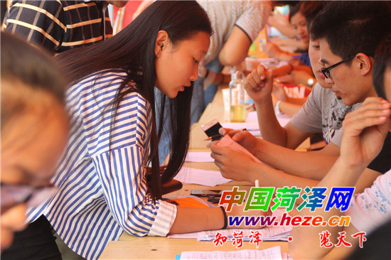 9月8日,一名菏泽学院的大学新生在报到处报到。当日,菏泽学院迎来了来自包括海南省、湖南省、四川省等全国25个省、市的5600多名2015级新生。在相关部门通力合作下,校内引导、报到、行李搬运等工作井然有序,所有新生顺利完成开学报到,迎接他们的将是美好的大学生活。记者 胡德光 见习记者 刘洋摄