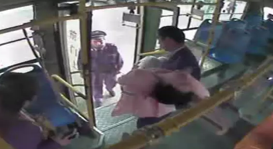 到达医院急诊室门前,朱保国抱着昏厥乘客迅速下车