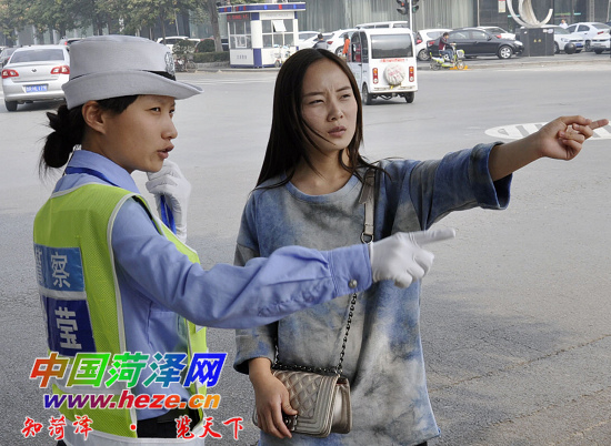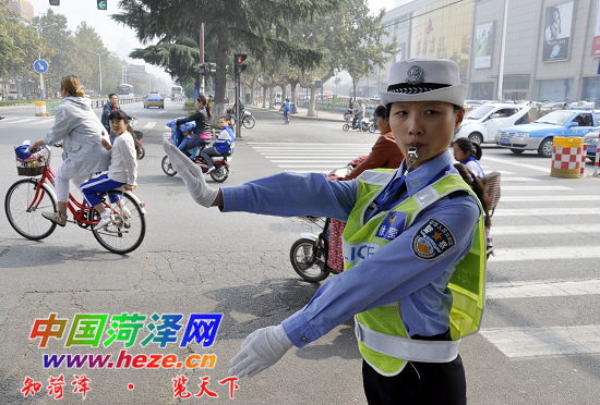 这是一群将青春献给平安交通的年轻人——女协警,深色制服、洁白的礼帽、温柔的笑脸以及威严的警姿,成为城区两个交通路口一道靓丽的风景。中华路与牡丹路路口、中华路与和平路路口是城区仅有的两个女子岗,一共24名女协警,主要工作为指挥车流,以及对非机动车和行人进行管控。
