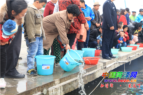 今年是菏泽市第二届放鱼活动。据了解,为办好本次放鱼活动,市水产局前期对赵王河水质进行环境了调查,确认放流鲢鳙鱼、鲤鱼和草鱼100万尾,其中鲢鳙鱼45万尾、鲤鱼25万尾、草鱼30万尾。此外,未来半个月内,还将在雷泽湖、浮龙湖放流300万尾鱼。