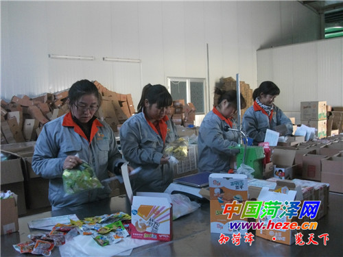 11月4日,山东壹号桌食品公司的员工正在分装即将发出的快递件。今年以来,坐落在东明县沙窝镇境内的壹号桌紧紧抓住电子商务发展机遇,大力实施网售战略,特别是淘宝“特色中国.菏泽馆”开馆大促活动的3天时间,壹号桌店铺销售27590笔,店铺销售额44万元,成为全市电子商务订单第一名。 通讯员 王恩标 记者 臧宾 摄