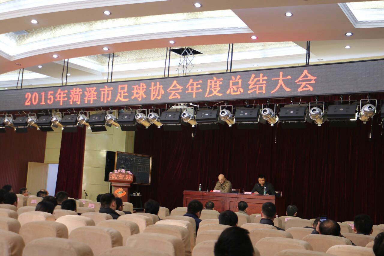 中国菏泽网消息(记者 荆彦茹)2015年菏泽市足球协会年度总结大会于今日上午在牡丹区实验小学隆重召开,市足协秘书长察可军主持年度总结大会,市足协主席房惠敏等主要领导及足协各部门负责同志和支持菏泽足球运动发展的社会各界热心人士列席会议。