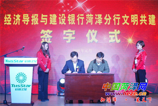 中国建设银行菏泽分行与经济导报社文明共建签约仪式现场