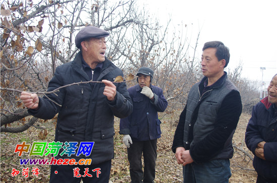 为贯彻落实“双联双创”活动,成武县经济开发区机关党员干部和行政村干部零距离和群众接触、面对面和群众交流、心连心和群众办事,把每一件事办到群众心坎上。经济开发区刘庄行政村党支部书记刘庆立为提升全村800多亩果品品质,增加全村果农增产增收,聘请淄博市沂源县钟村镇71岁的农艺师苗兴代(左一)和田立春到刘庄讲课,让群众在实际操作中懂得技术、学会技术。 通讯员袁广义摄