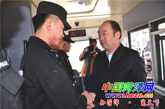 节日的菏泽,张灯结彩,处处洋溢着喜庆的气氛。上午9时许,解维俊首先来到中华路与牡丹路交叉路口执勤岗,同值班交警一一握手,亲切交谈。他说,公安交警工作非常辛苦,越是节假日越繁忙,大家常年坚守一线,用辛勤付出换来了良好的交通秩序,工作美誉度和赞誉度不断提升。我代表市委、市政府向你们拜年,同时也向全市广大公安干警致以新春的祝福,希望大家忠于职守,确保全市人民度过一个安宁祥和欢乐的节日。