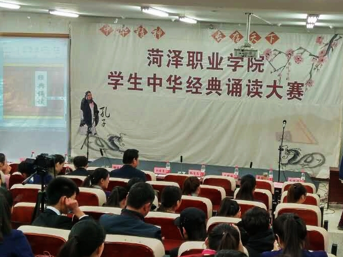 为深入贯彻习近平总书记系列讲话精神,弘扬中华优秀传统文化,培育和践行社会主义核心价值观,菏泽职业学院于4月28日下午举办了"家乡美、菏泽颂"中华经典诵读大赛活动。唐广博 摄影报道