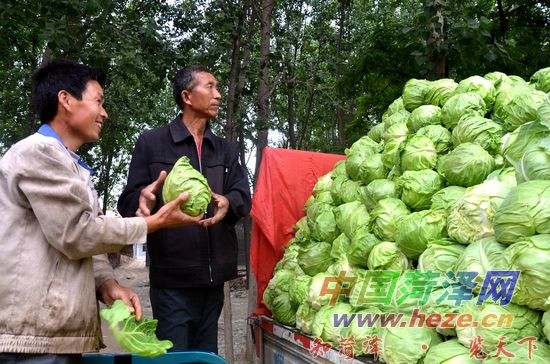 5月14日,在牡丹区马岭岗镇朱庙行政村的街头,商户们正在忙着收购包菜。据了解,朱庙行政村是远近闻名的蔬菜种植专业村,有着多年的种植历史,今年村里统一种植的菜花、蒜薹、包菜获得丰收,吸引了来自郓城、鄄城等周边县区,以及河南兰考等地的商户前来收购。 记者 时苏建 摄