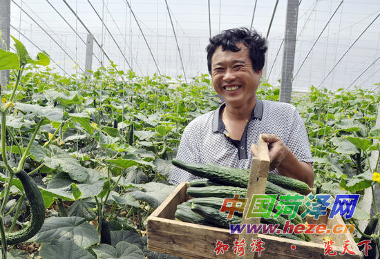 日前,在东明县大屯镇屈屯村产业扶贫基地,村民孙红旗正在大棚内采摘无公害蔬菜。去年底,村里成立了种植专业合作社,与寿光一蔬菜公司合作,大力发展蔬菜种植推动脱贫攻坚。今年春节后,孙红旗依靠各项补助和政策性贷款,建起一座大棚,45天生长期后,黄瓜开始结果。短短几个月时间,已经收获4万余斤黄瓜,销售收入近5万元。屈屯村在扶贫攻坚中发挥产业优势,让有种植能力的困难群众加入合作社抱团发展,通过合作社这一平台,最大限度的在信息、资金、技术、培训等方面给予贫困户扶持,增强贫困户自身“造血”能力,助推贫困户尽快脱贫。 记者 张 啸 摄