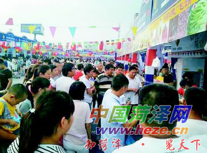 中国菏泽网消息 7月11日,记者从2016菏泽首届(国际)美食文化节工作组了解到,美食文化节在菏泽毅德城举办四天以来,持续火爆,累计约有15万人到现场品尝美食。据了解,美食节以“万国风情,吃遍全球”为主题,本次活动由花冠集团冠名,从7月8日至12日为期5天,现场共设展位70个,有韩国炒年糕、啤酒炸鸡、羊排烧、多味果滋、马桶冰淇淋、印度拉茶、印度飞饼、西班牙帝王蟹等百余档国际美食惊艳你的味蕾。此外,美食节期间每天晚上不仅有丰富多彩的文艺节目,还有趣味比赛游戏互动。 文/图 记者 羊莹春