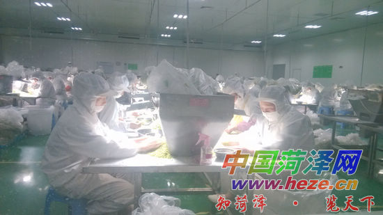 8月3日,定陶区半堤镇嘉宏脱水食品公司蔬菜精加工车间内,工人们正在进行脱水蔬菜半成品分拣。据悉,半堤镇政府开展“送岗上门”服务,将辖区内企业纳入扶贫平台,同时对贫困留守妇女进行专业培训,安排精准扶贫户进企业当工人,人均月工资2000元左右,从根本上帮助贫困户增收脱贫。 通讯员 石慧丽 记者 刘卫国 摄