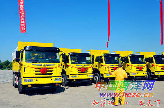 中国菏泽网消息 8月27日,我市首批40辆智能渣土车正式交付使用。据了解,智能渣土车采用绿色动力,满足排放环保标准,并且匹配了全密封性能货箱结构,有效杜绝老式渣土车运输过程中的抛洒漏问题。 记者 孔博 摄