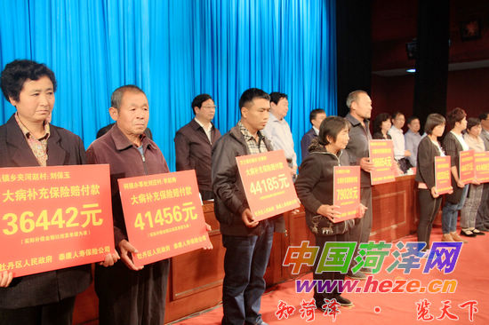 日前,牡丹区贫困人口大病医疗商业补充保险启动仪式在牡丹区委西会堂举行。仪式的启动将首先对今年1-8月份全区符合条件的665户贫困户进行兑付,总兑付金额720余万元。现场,50名受益的贫困群众代表到现场进行了兑付,总兑付金额127万元,其中兑付最多的一户焦俊莲兑付了186854元。 记者 李亚楠 摄