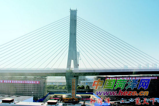 11月8日上午10时,全市瞩目的丹阳立交桥主桥转体工程将正式实施。丹阳立交桥需要转体的斜拉转体主桥长度为238米,重2.48万吨,将逆时针完成81.67度转体,建成后将成为世界上最重的斜拉转体桥。11月6日,牡丹晚报记者从丹阳立交桥项目指挥部获悉,当前丹阳路跨铁路立交桥主桥转体工作准备就绪,11月7日上午9时主桥将进行逆时针旋转6度、用时60分钟的试运转测试。