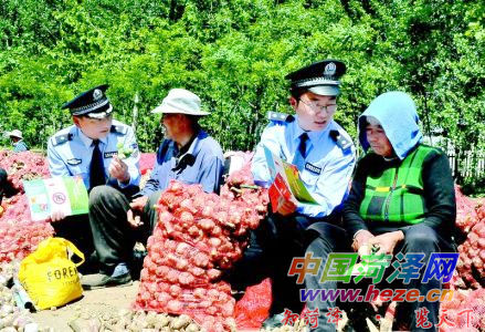 5月11日上午,成武县公安局组织禁毒大队和各派出所民警,在全县范围内集中开展了禁毒宣传“进学校、进企业、进社区”活动,进一步强化了广大群众识别毒品、抵御毒品、远离毒品的禁毒意识和能力,营造了浓厚的禁毒宣传氛围,取得明显成效。图为民警走进田间地头与蒜农座谈并讲解毒品知识的情景。