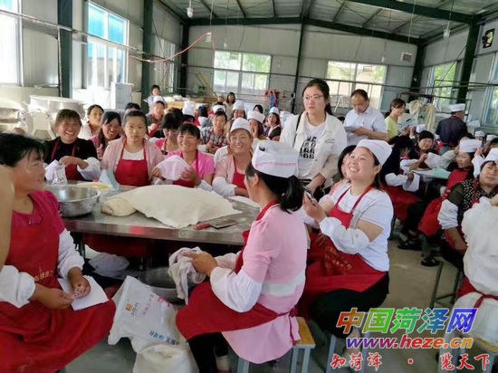 中国菏泽网消息(通讯员:褚宏鹏 王越 周付生)近日,为相应市委、县委组织部号召,深入推进“双联双创”活动见实效,东明县人社局再出新招——送培训技能上门,“造血扶贫”助力精准脱贫。刚刚结束的陆圈师岗精准扶贫“小吃面点”培训班典礼,由人社局有关负责人、劳动技校老师以及村干部等参加。该培训班由县人社局就业办和“第一书记”张传英牵头,由菏泽市劳动技校老师提供免费培训,课时为一个月,主要包括98种面点和100余种烹饪菜式培训。培训结束后,学员通过考试将得到由县人社局免费发放的创业证和面点师证、厨师证。